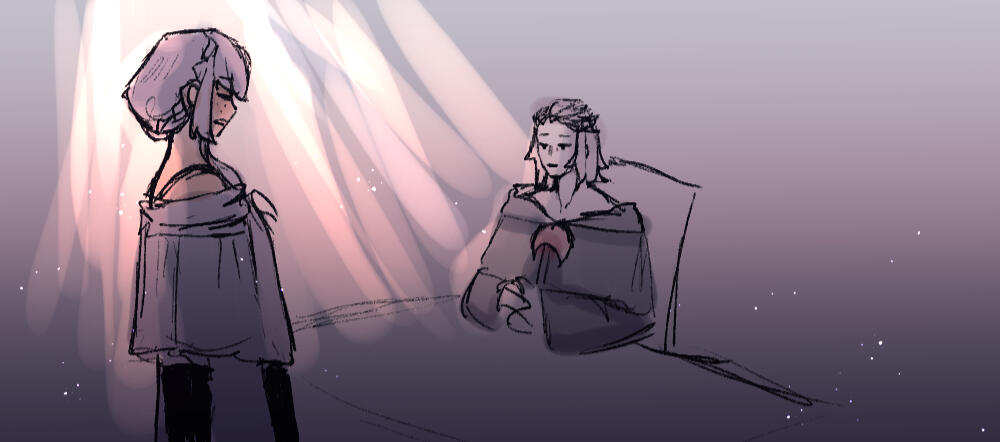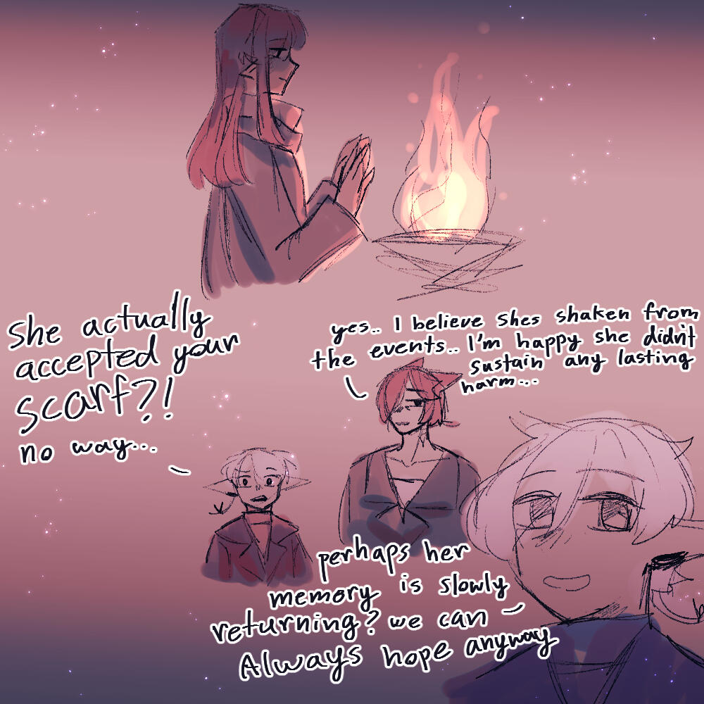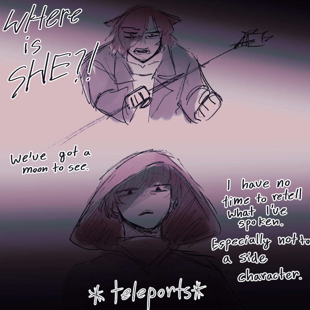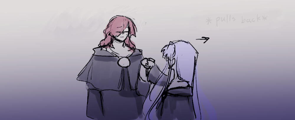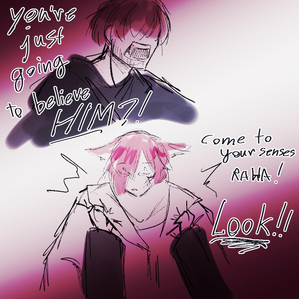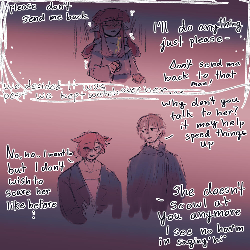She could not stand being near him at the moment, but she was harassed by Emet-Selch, for he could see she was put off by the Exarch.
