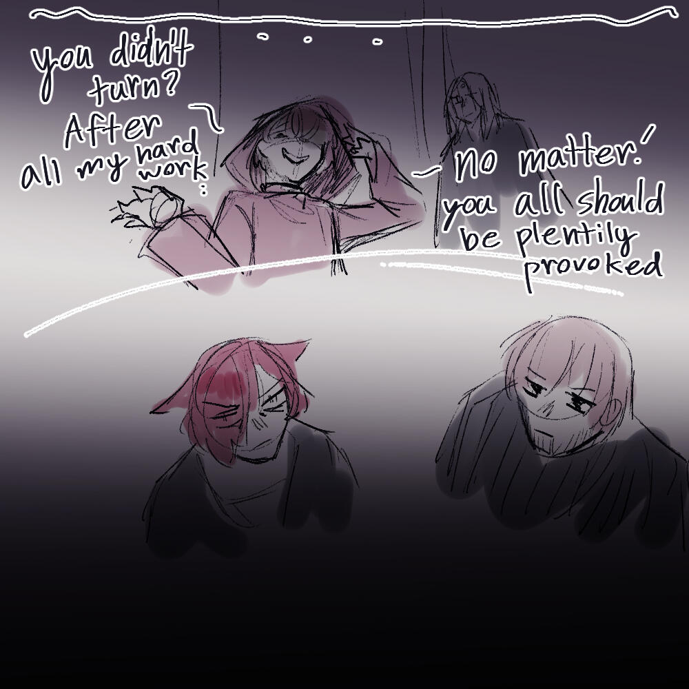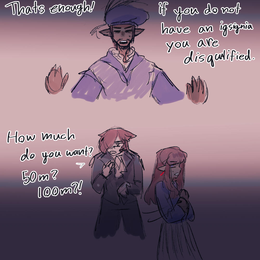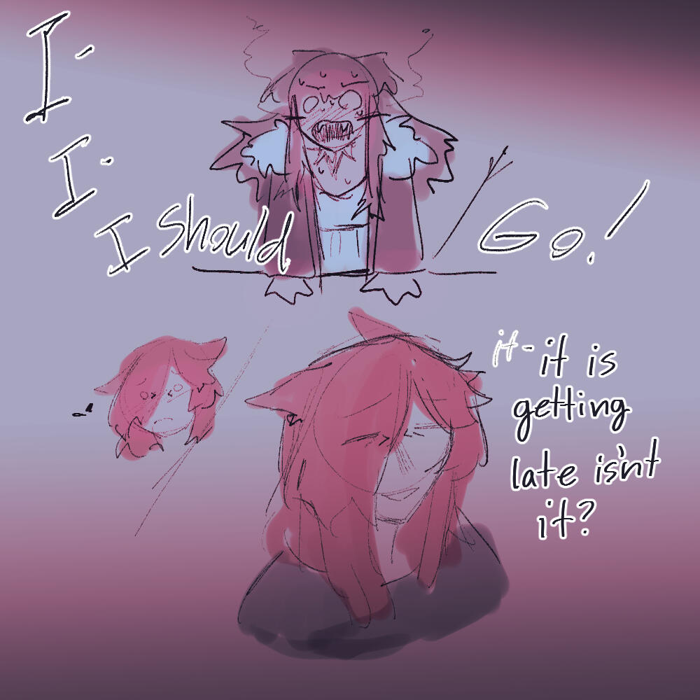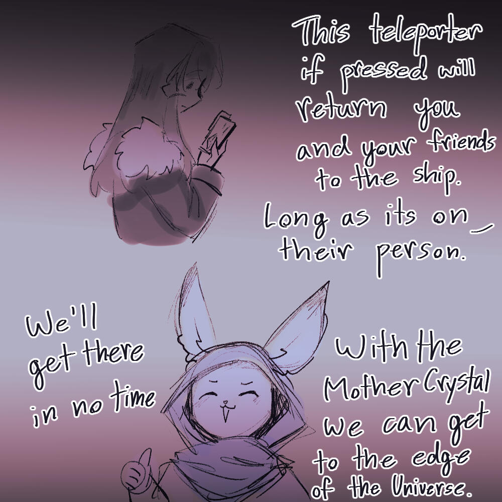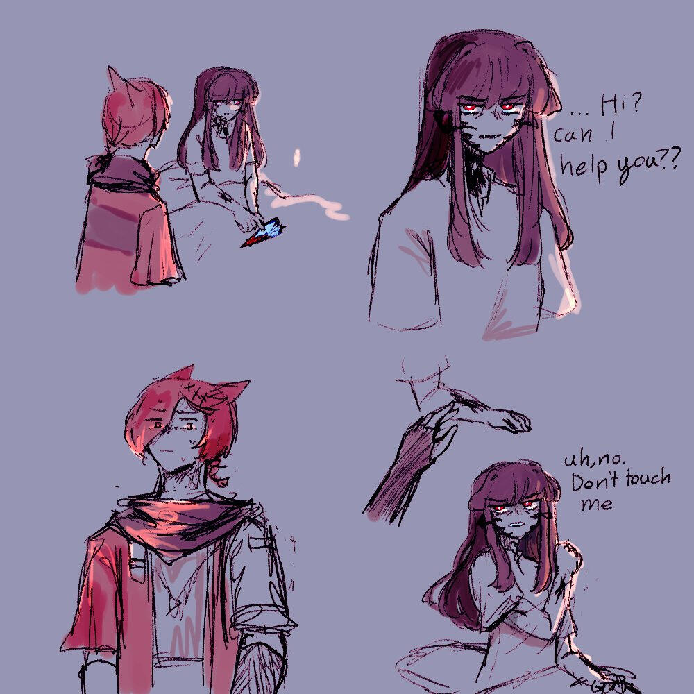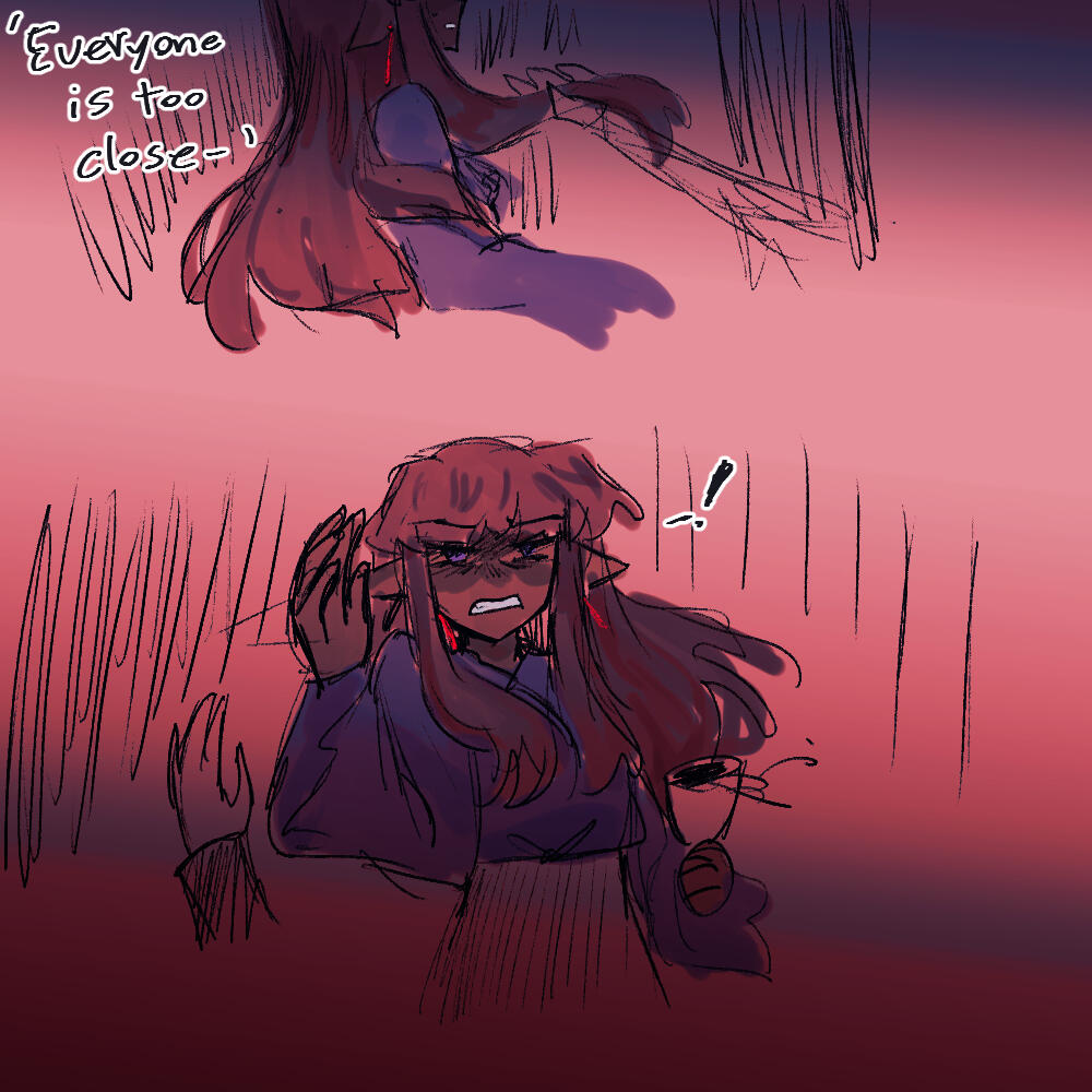 She could not stand being near him at the moment, but she was harassed by Emet-Selch, for he could see she was put off by the Exarch.