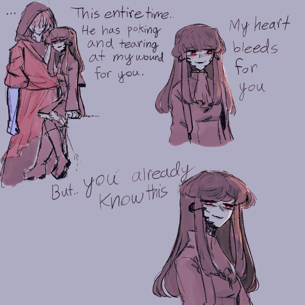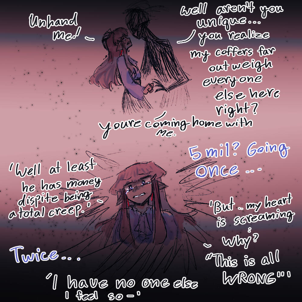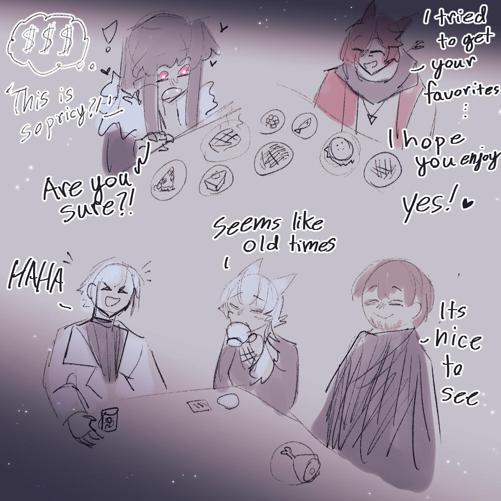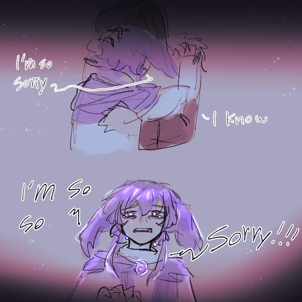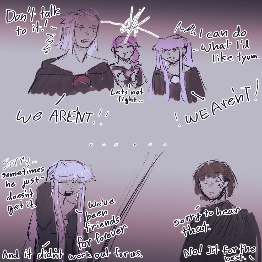 She could not stand being near him at the moment, but she was harassed by Emet-Selch, for he could see she was put off by the Exarch.