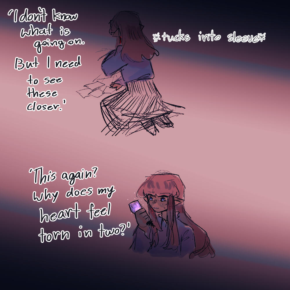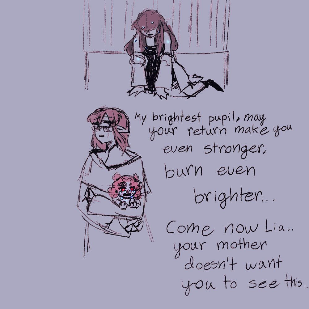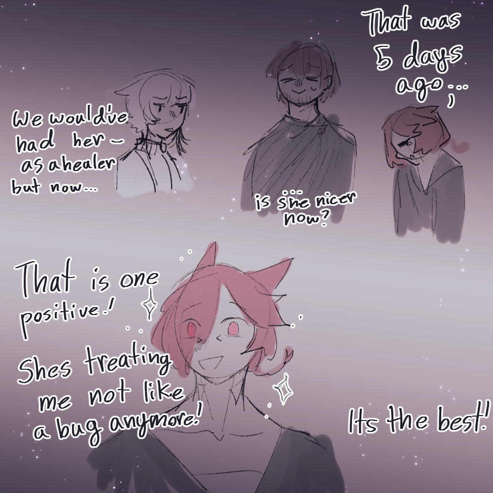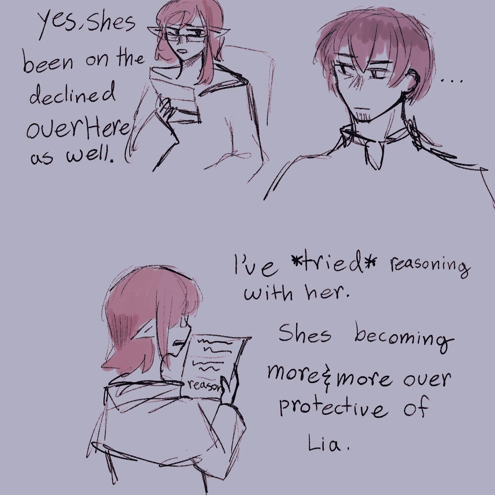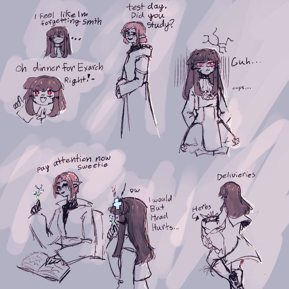 She's been feeling extreme fatigued over everything that has happened, trying to maintain her routine but shes so exhausted. Shes fainted more than once.Exarch takes her to her old mentor Chessamile.
