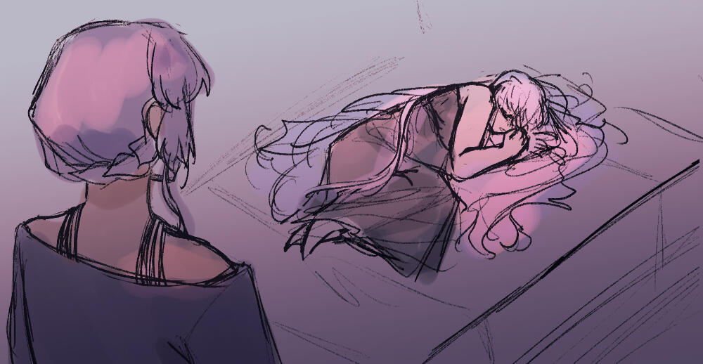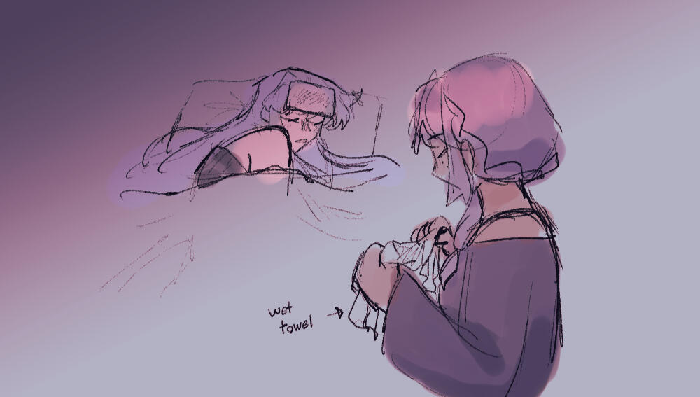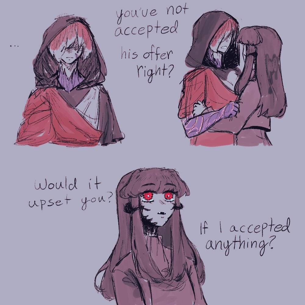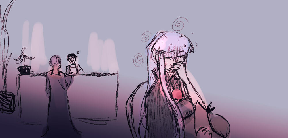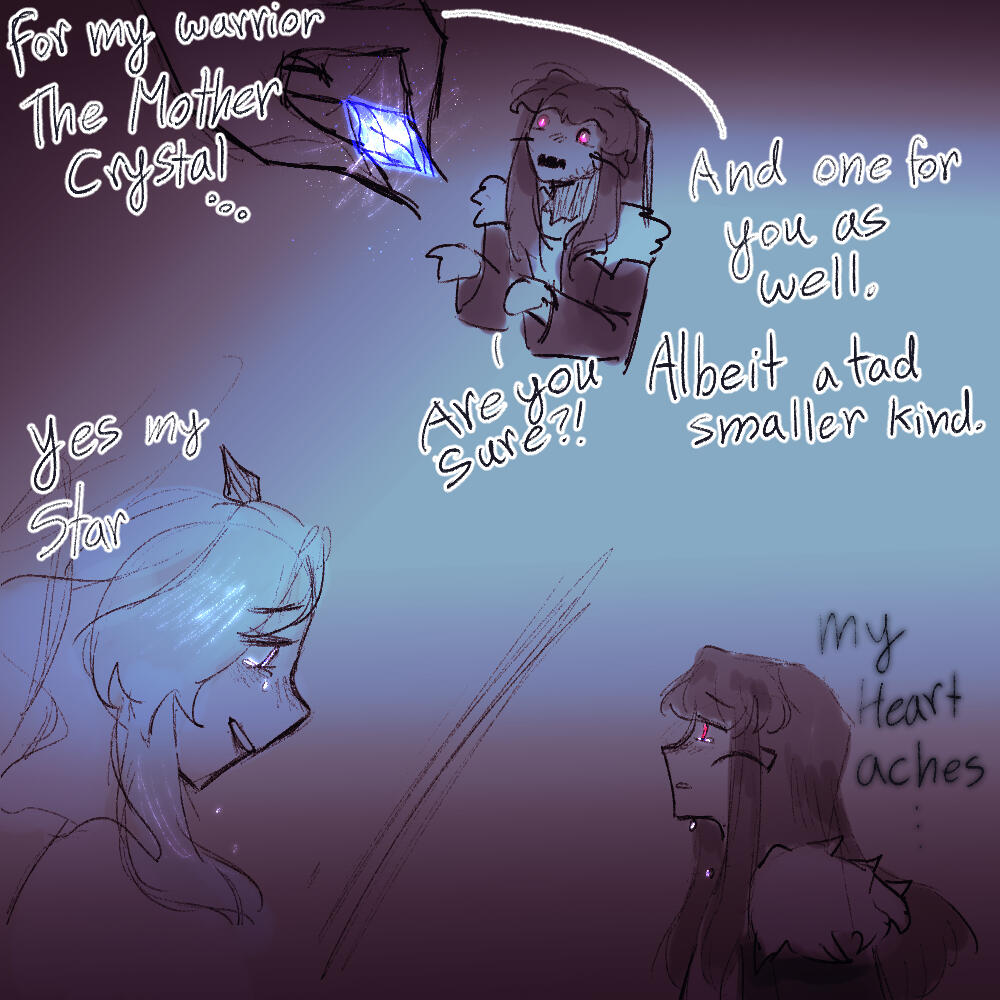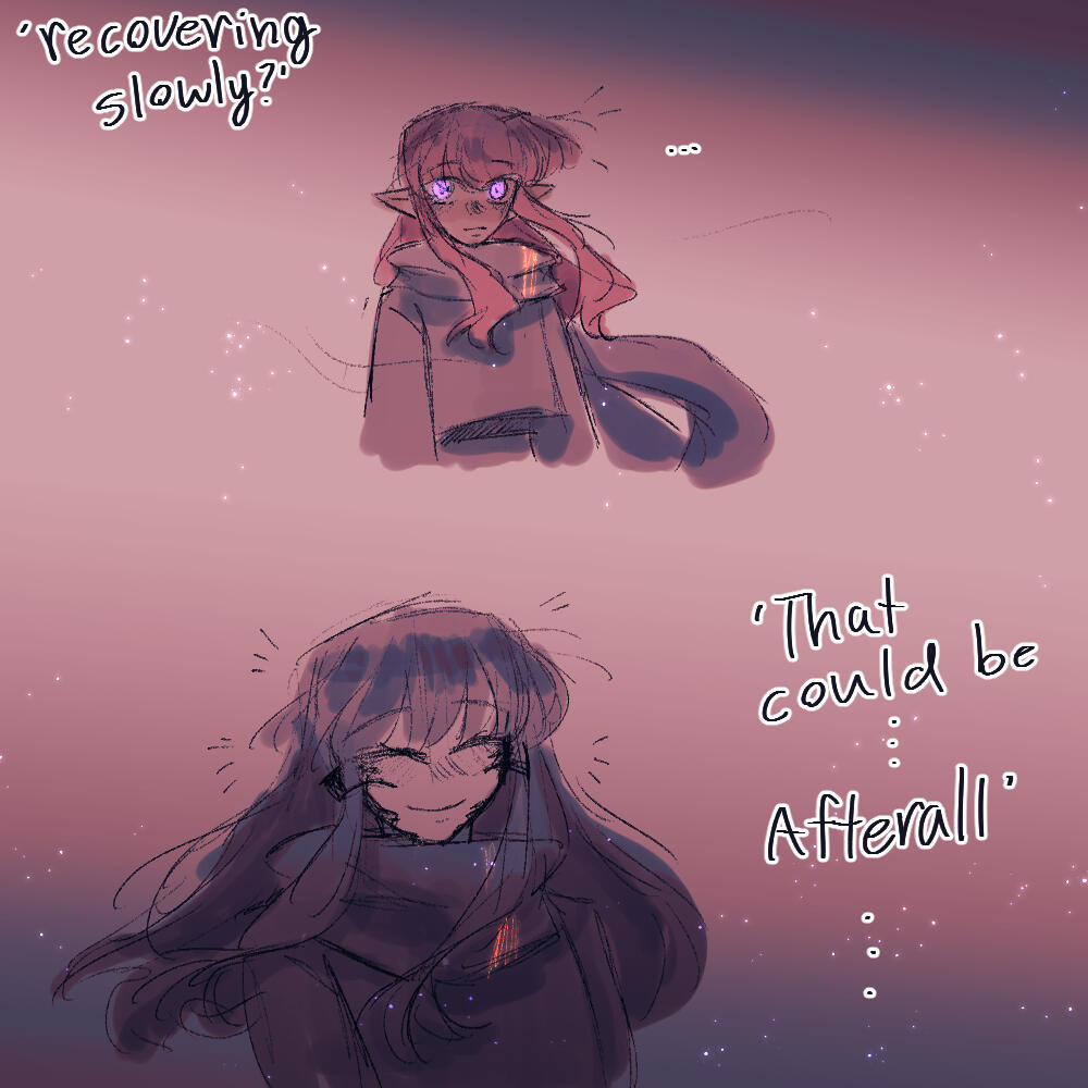 She's been feeling extreme fatigued over everything that has happened, trying to maintain her routine but shes so exhausted. Shes fainted more than once.Exarch takes her to her old mentor Chessamile.