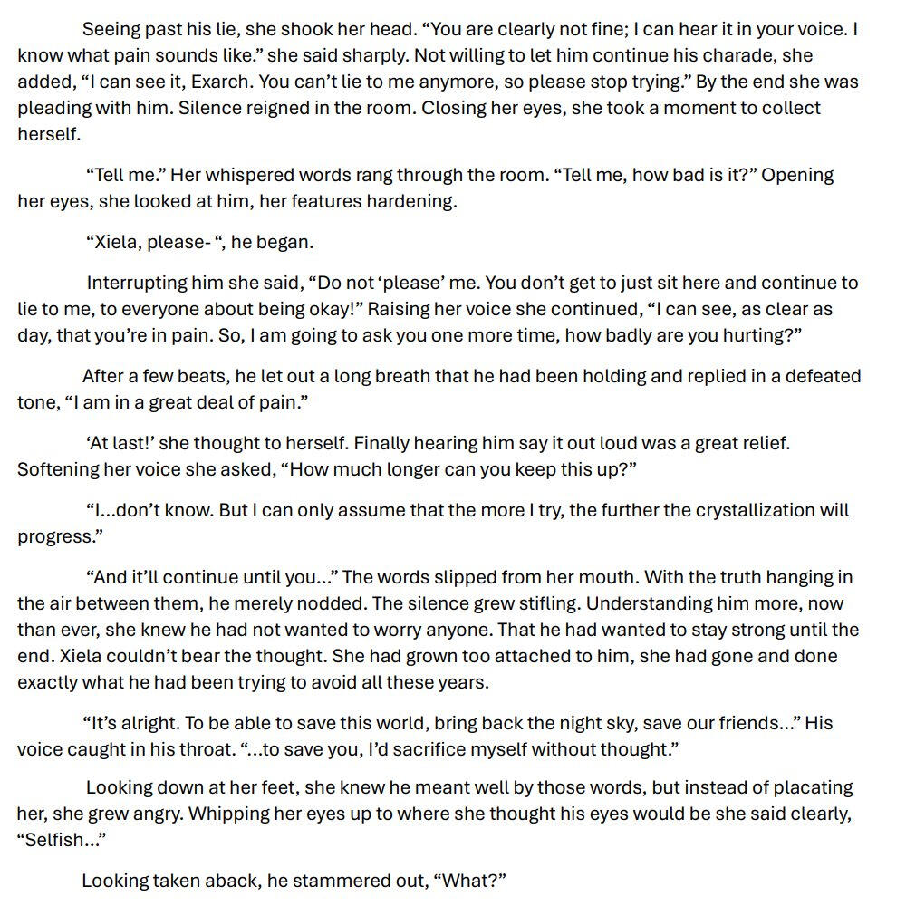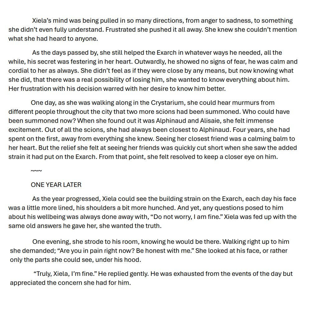 Mella helped me draft and Emmie helped edit writingXiela and the Exarch grew very close during those five years...