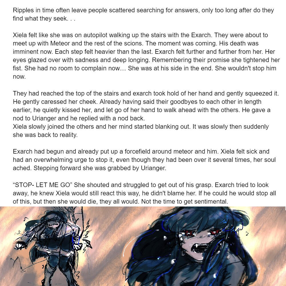 Ser Aymeric knows Xiela would love to travel and saw how valiantly she fought for Ishgard, he invites her to join him for a council meeting in Ala Mhigo to see her old friend Meteor and the other scions.Piercing headaches caused her to collapse, and Thancred also succumbed to the pain.She found herself in another world called the First.Upset without her glamour necklace, having to walk around in her Au Ra skin made her feel upset at the Exarch and vulnerable.