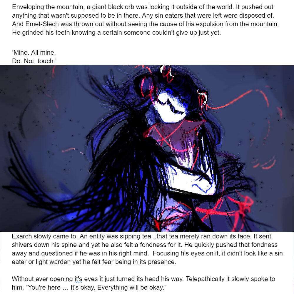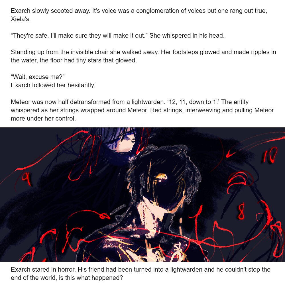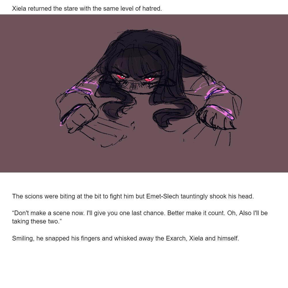 Meteor and co defeated 4 out of 5 lightwardens, Xiela decided to visit Exarch to steer him away from his decision again. But Emet intrudes on their conversation.