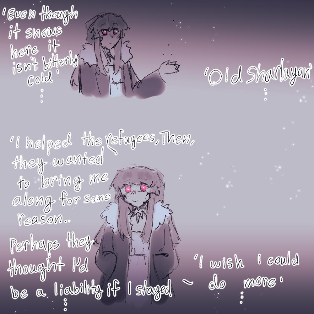 Seeing the world in the state it was, she wanted to help and heal more people there.She learned other medicine and picking herbs for Chessamile, the head doctor at the Crystarium.